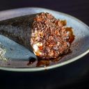 Pele de salmão crocante, cream cheese e molho teriyaki.(1 unidade)