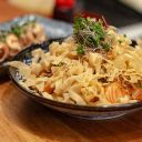 Salmão, molho de ostras, cebola crispy, cebolinha e crocante de harumaki.